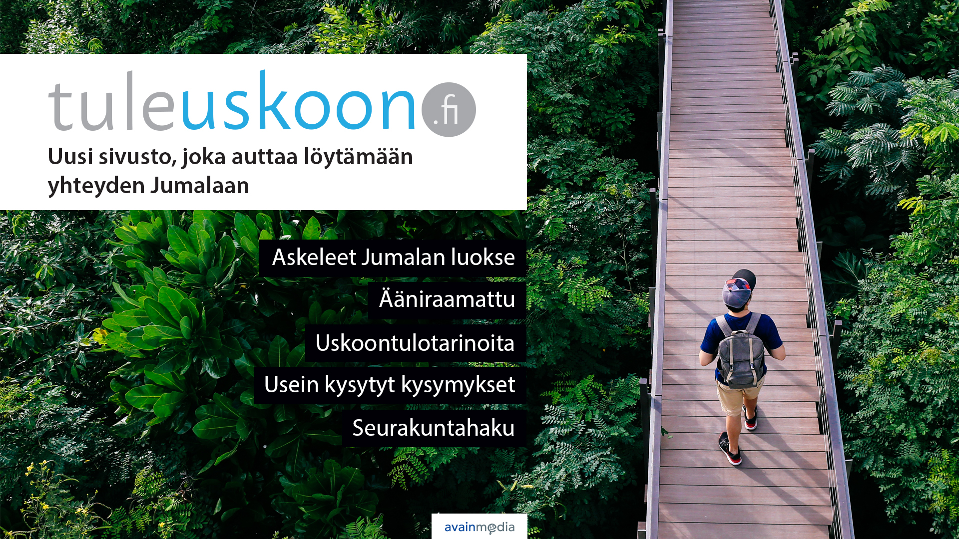 Tällä sivustolla pääset katsomaan ihmisten kertomuksia siitä, miten he ovat tulleet uskoon. Sivulta löytyy myös perustietoa Raamatun sanomasta ja siihen liittyvistä kysymyksistä. Siellä ohjeistetaan myös siihen, miten käytännössä voit tulla uskoon ja lähteä seuraamaan Jeesusta.